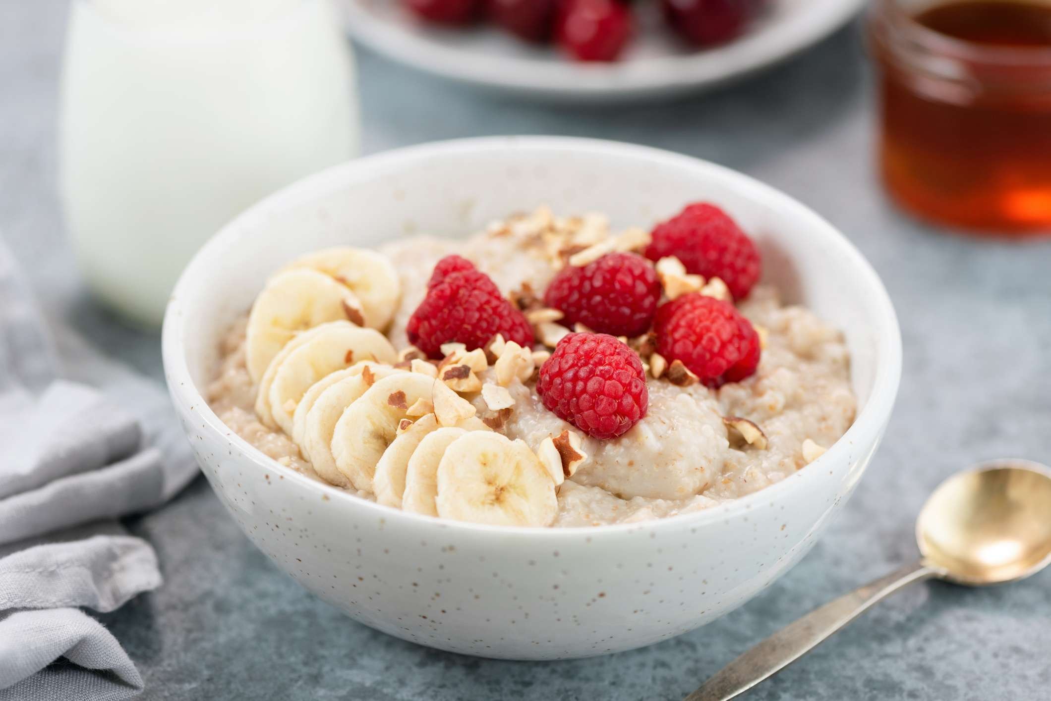 Вівсяна каша: Хоча вівсяна каша має своє місце, овес забезпечує додаткову кількість клітковини, 4 грами на чверть склянки. Їх щільна текстура робить їх ідеальними для сніданку зі свіжими ягодами, йогуртом і гарбузовим насінням.